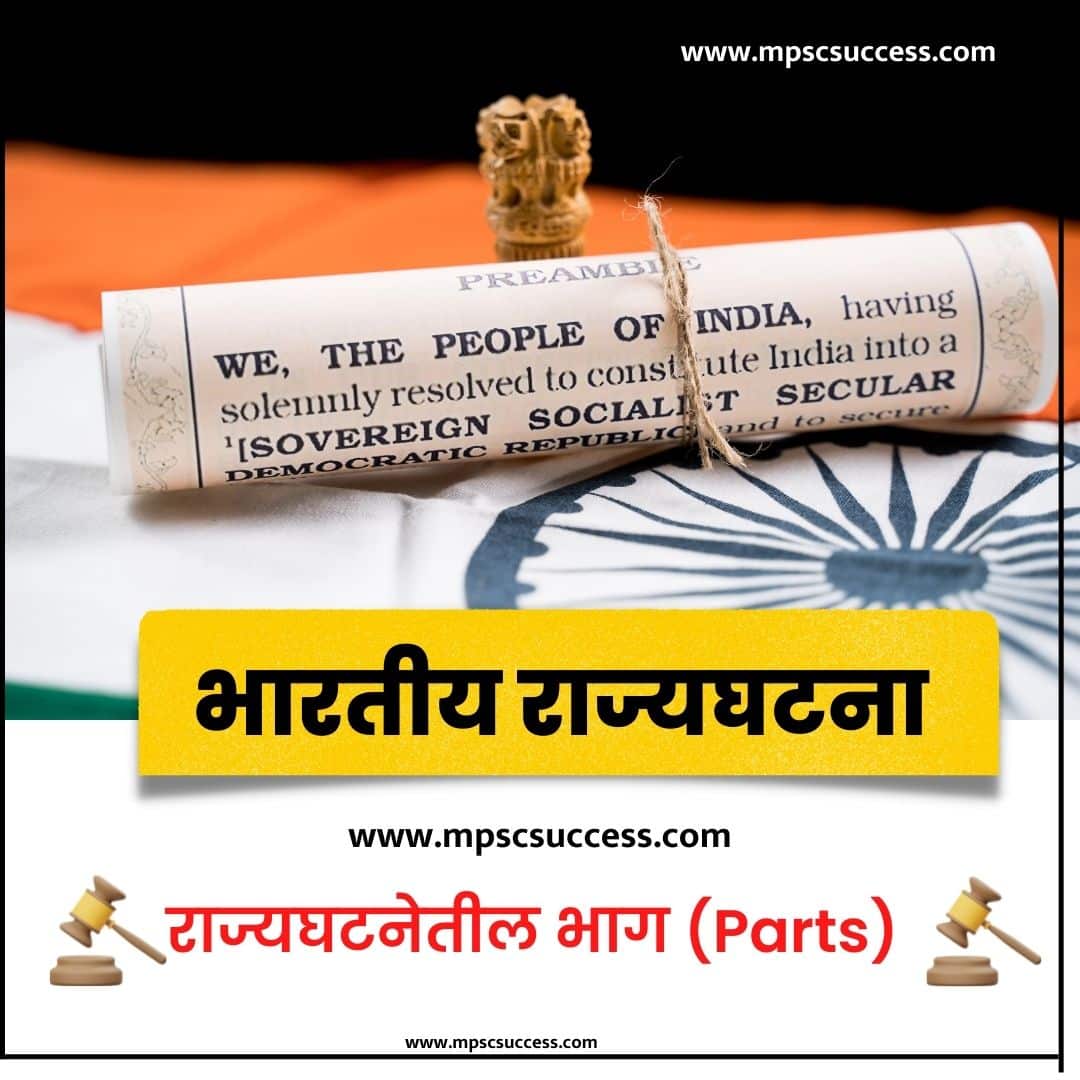 ◆ भाग पहिला – संघ आणि त्याचे राज्यक्षेत्र◆ भाग दूसरा – नागरिकत्व◆ भाग तिसरा – मूलभूत हक्क◆ भाग चौथा – मार्गदर्शक तत्वे◆ भाग चार ‘अ’....